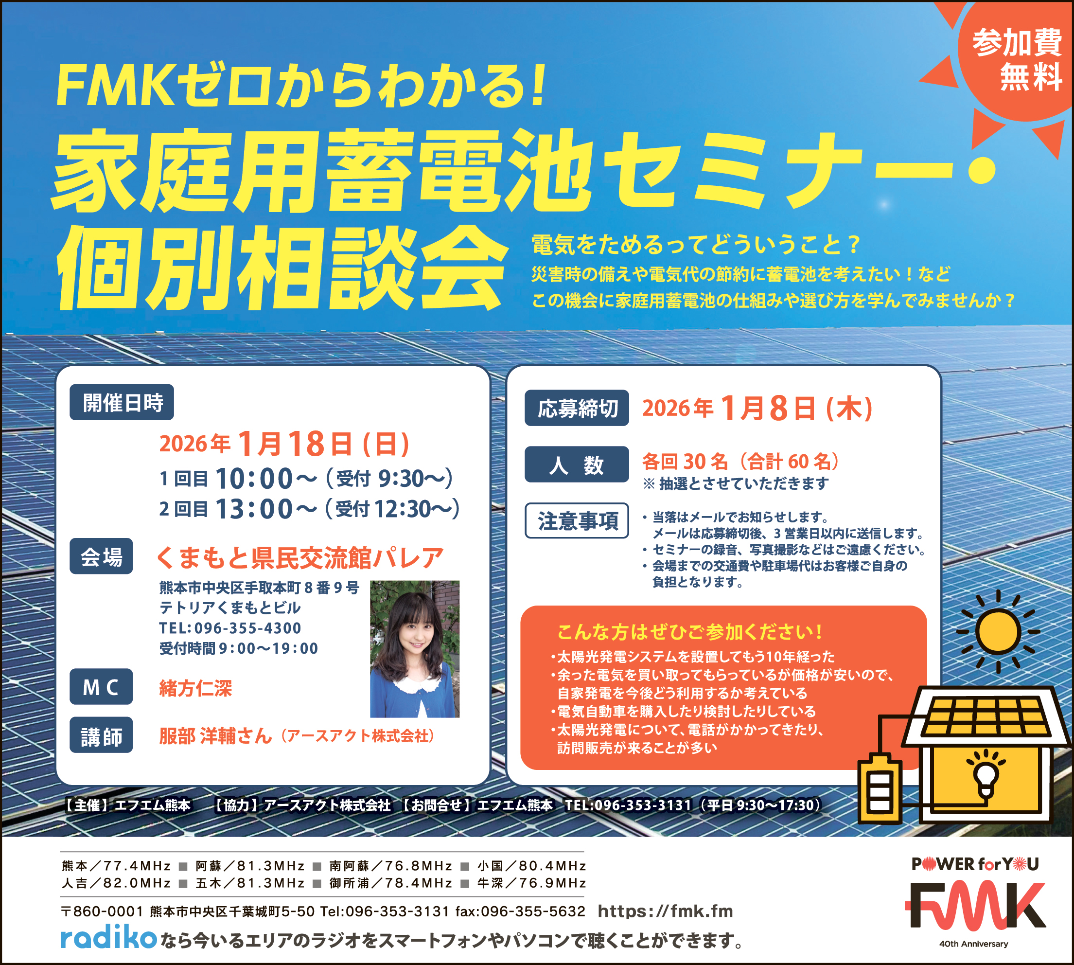 FMK ゼロからわかる! 家庭用蓄電池セミナー・個別相談会