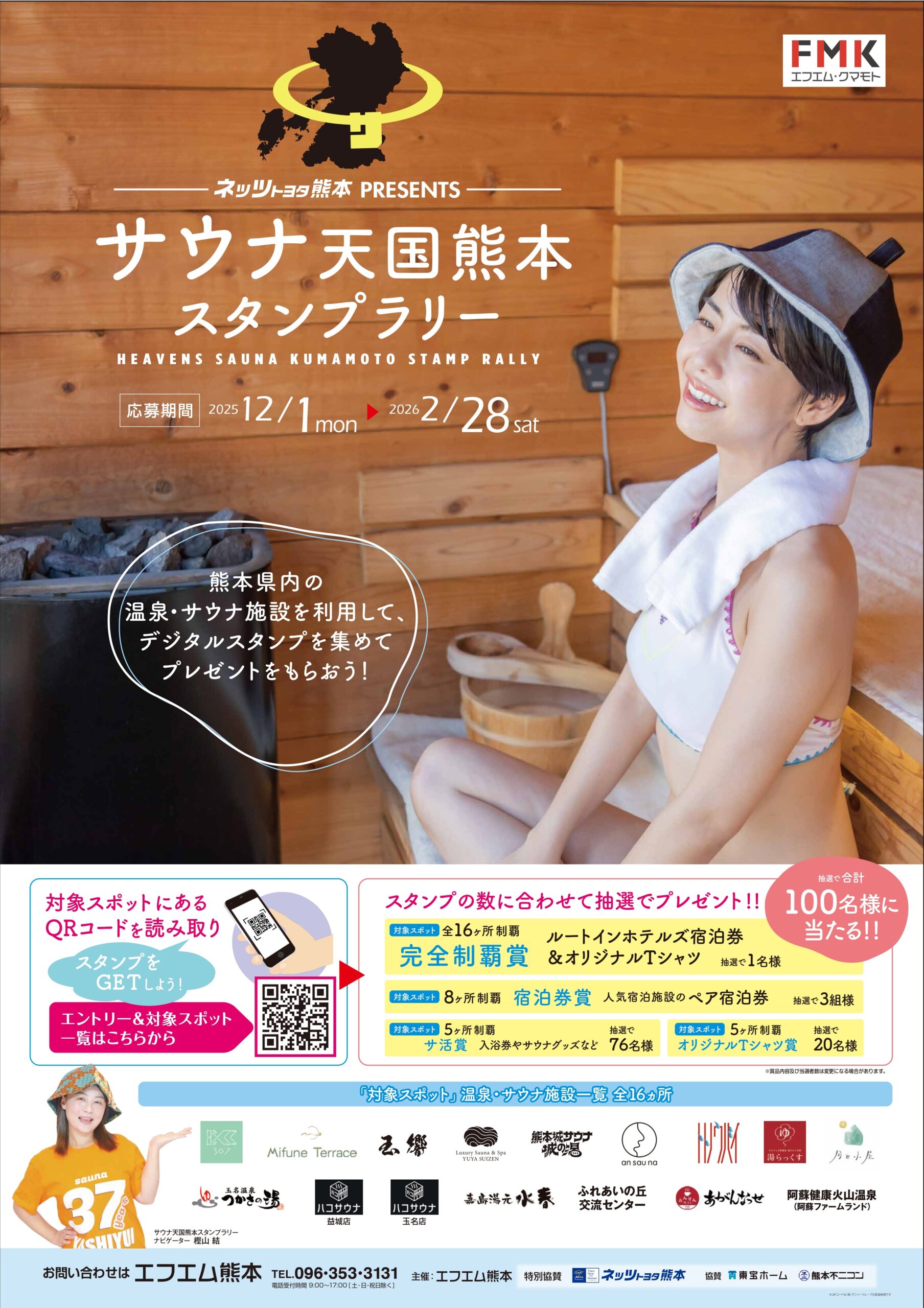 サウナの聖地熊本で、熊本県内の有名どころはもちろん、最近話題の新しいサウナ 16ヶ所 が参加! サウナを回って、スタンプをゲットしよう!